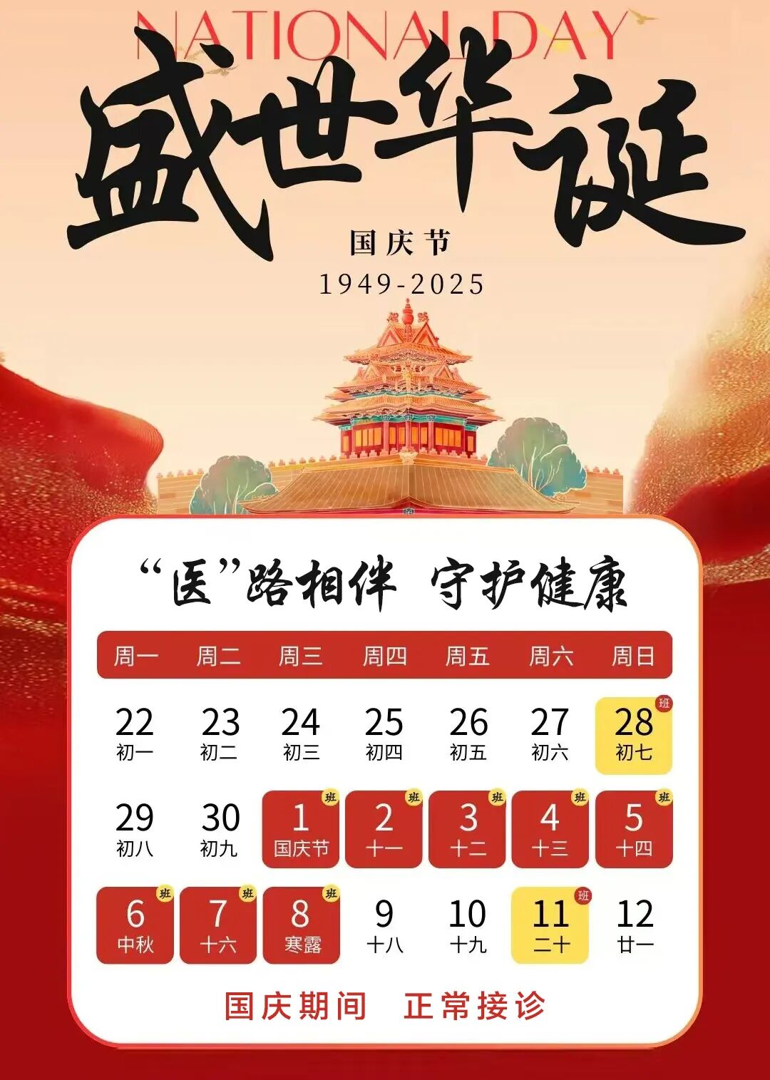 为满足广大市民就诊需求,10月1日至10月8日,我院各科室照常开诊,各位市民可以根据自身需求选择就诊科室和医师,专家团队将一如既往地为您提供专业、精准的诊疗服务。