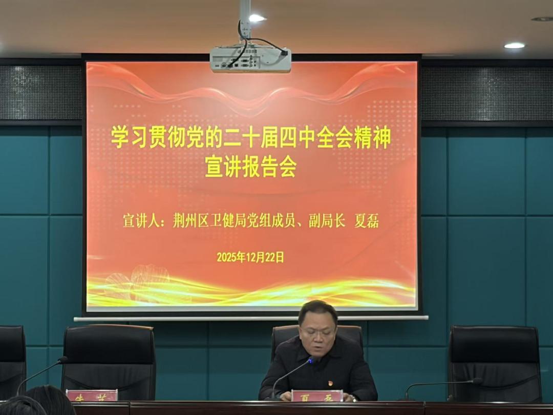 为深入学习贯彻党的二十届四中全会精神,推动全会精神在基层医疗卫生领域落地生根,12月22日,荆州区卫健局党组成员、副局长夏磊赴荆州市荆州区皮肤病防治院开展专题宣讲报告会,院领导班子及干部职工参加学习。