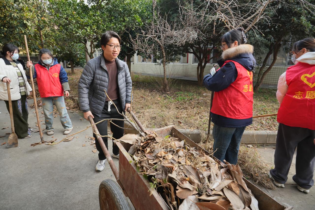 下午两点,青年先锋队的队员们身着统一的志愿服装,宛如一群即将奔赴战场的勇士,带着清扫工具准时集结。队长刘孝斌部署分工后,队员们迅速投入到紧张而有序的行动中。有的手持扫帚,认真清扫着庭院小径上堆积如山的枯枝落叶,那沙沙的扫地声,仿佛是一首温暖的劳动之歌;有的推着垃圾车,一趟又一趟地转运着堆积物,脚步坚定而有力;还有的细心擦拭着公共设施上的灰尘,不放过任何一个角落。