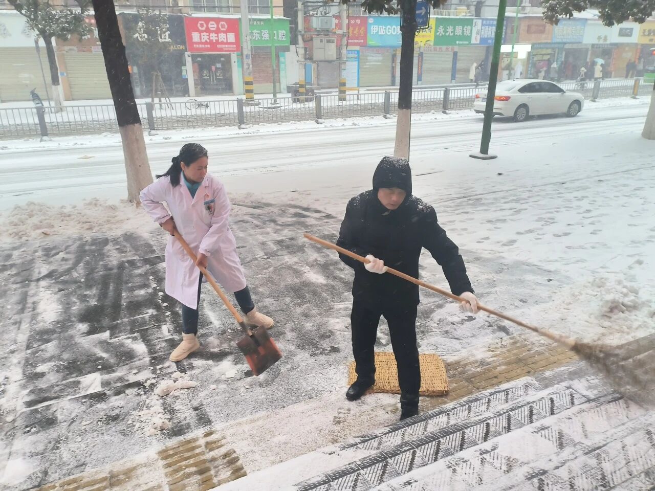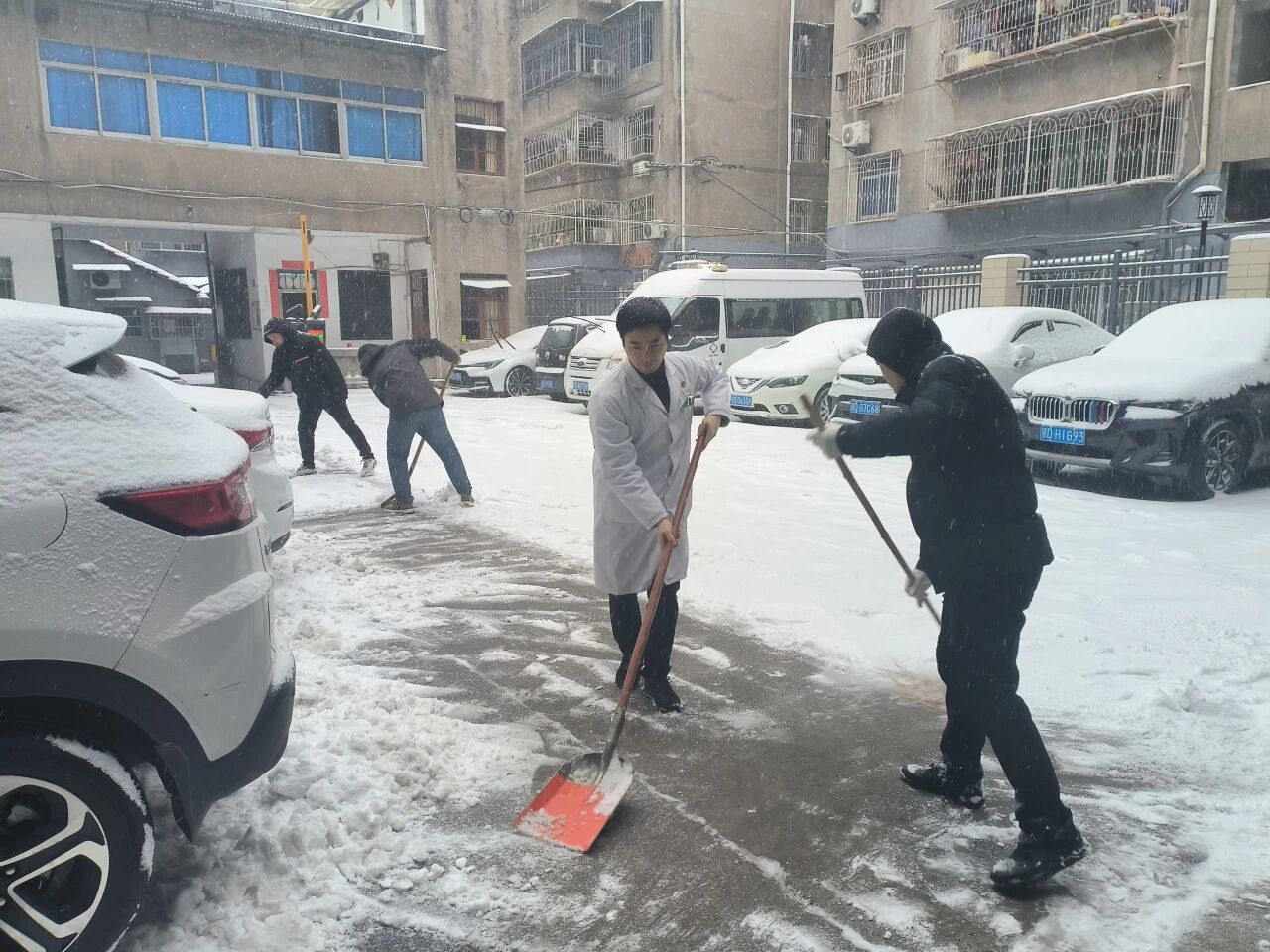 雪情就是命令,降雪伊始,医院领导班子立即启动应急案,迅速组建由党员干部和职工构成的铲冰除雪突击队。大家迅速从各自岗位奔赴指定区域,一场与冰雪的战斗就此拉开帷幕。