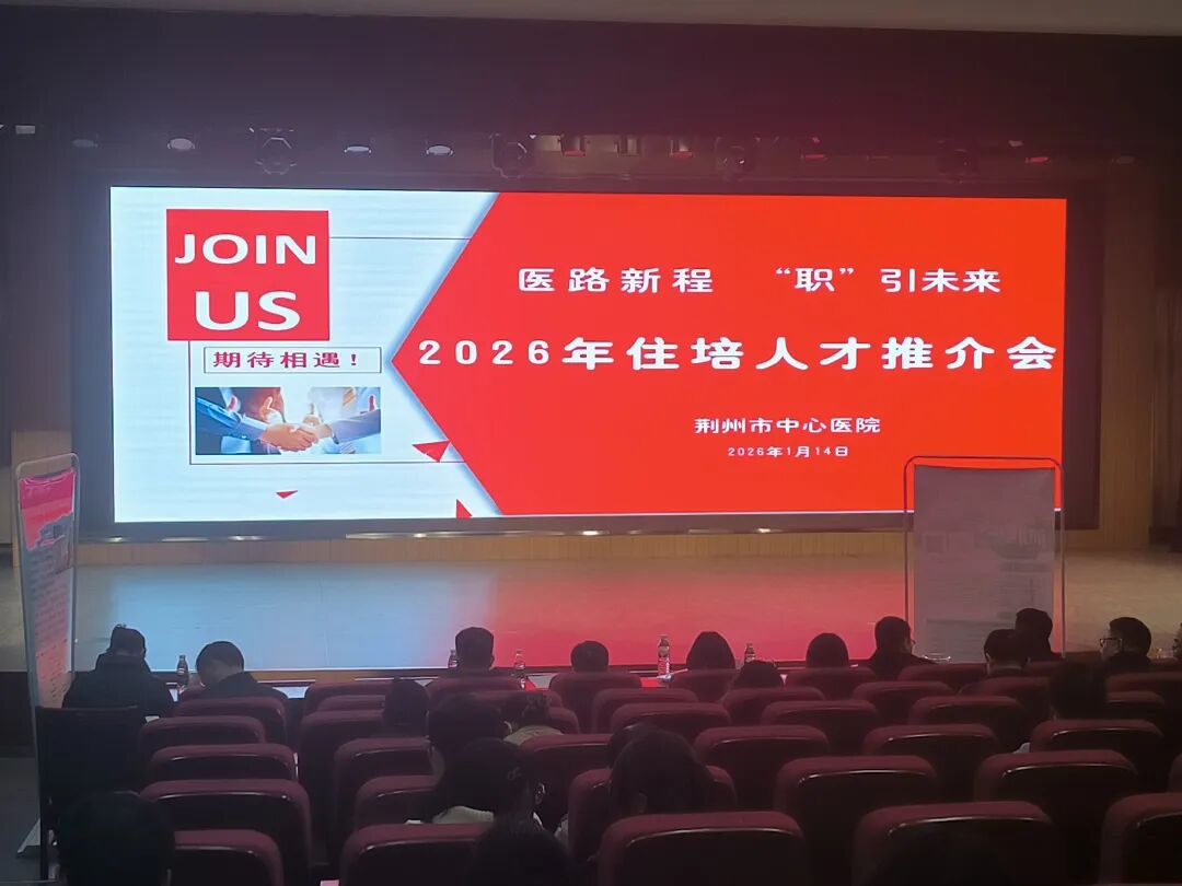 为深入贯彻落实荆州市卫生健康事业发展规划,加强医疗人才队伍建设,1月14日下午,荆州市荆州区皮肤病防治院参加荆州市“医路新程,‘职’引未来”2026年人才推介见面会。本次推介会在荆州市中心医院北院院区后勤保障楼四楼学术报告厅举行,吸引了来自省内外的2023级住培学员及社会医学人才参会。