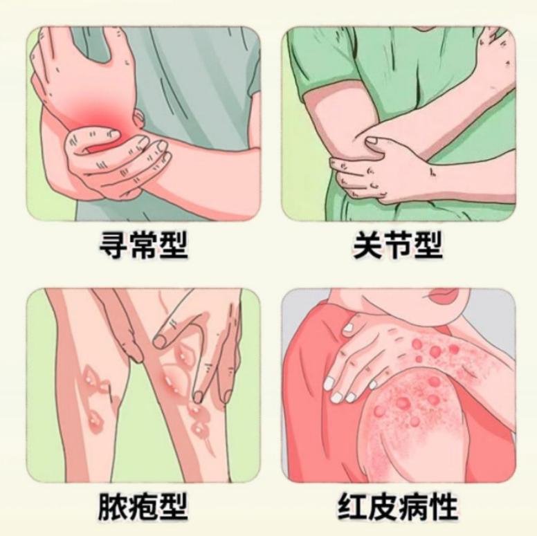 关节病型:除皮肤症状,还伴有关节炎症状,严重的时候会导致关节畸形,让患者行动不便,生活质量大打折扣。