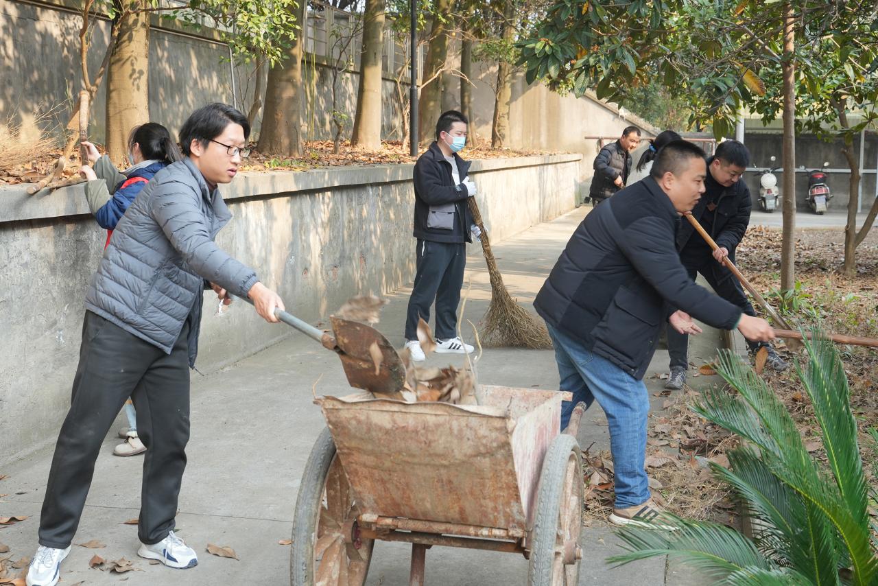 下午两点,青年先锋队的队员们身着统一的志愿服装,宛如一群即将奔赴战场的勇士,带着清扫工具准时集结。队长刘孝斌部署分工后,队员们迅速投入到紧张而有序的行动中。有的手持扫帚,认真清扫着庭院小径上堆积如山的枯枝落叶,那沙沙的扫地声,仿佛是一首温暖的劳动之歌;有的推着垃圾车,一趟又一趟地转运着堆积物,脚步坚定而有力;还有的细心擦拭着公共设施上的灰尘,不放过任何一个角落。